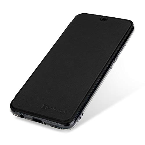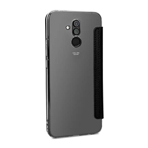 StilGut Berlin Book Type Case, Custodia per Huawei Mate 20 Lite con NFC/RFID Blocker in plastica Trasparente con Patta in Pelle Nappa. Nero/Trasparente