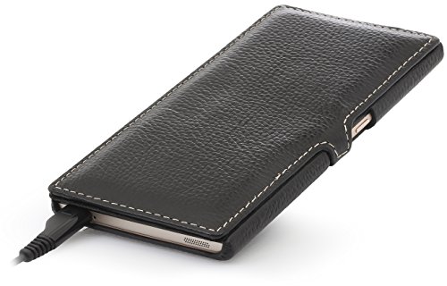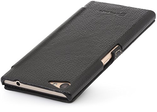 StilGut Book Type Case con Clip, Custodia in Vera Pelle a Libro per Wiko Highway Star, Nero