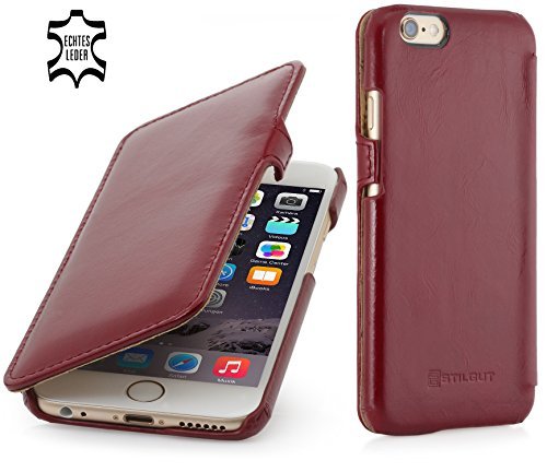 StilGut Book Type Case con Clip, Custodia in Vera Pelle a Libro per Apple iPhone 6s (4.7“), Rosso Vinaccia