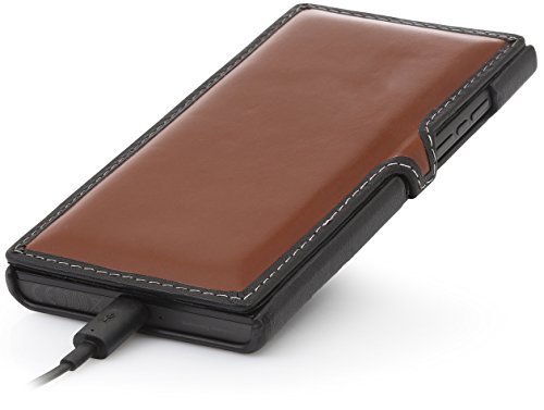 StilGut Book Type Case con Clip, Custodia in Vera Pelle per Blackberry Leap, Marrone/Nero - Nappa