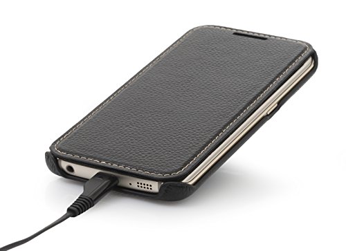 StilGut Book Type Case Senza Clip, Custodia in Vera Pelle per Samsung Galaxy S6 Edge, Nero