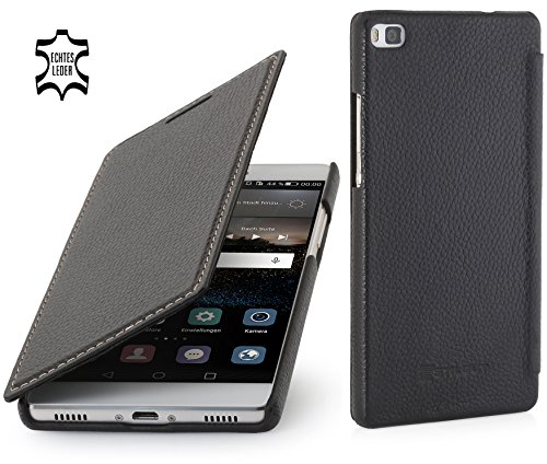 StilGut Book Type Case Senza Clip, Custodia in Vera Pelle a Libro per Huawei P8, Nero