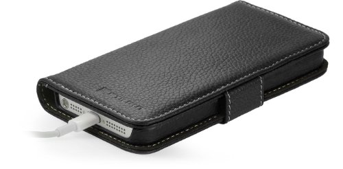 StilGut Custodia in Pelle Talis Book Type per Apple iPhone 5 & iPhone 5s in Vera Pelle con Scomparto per Banconote, Carte di Credito e Biglietti da Visita, Nero