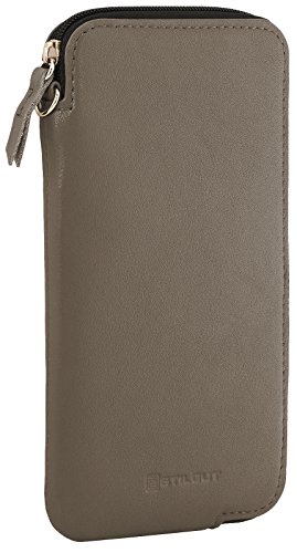 StilGut Custodia porta cellulare universale in vera pelle con zip, per smartphone fino 6”, misura XL, Grigio Nappa