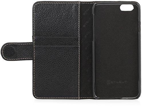 StilGut Custodia Talis con Funzione Supporto, Custodia a Portafoglio Flip Case Lavorata a Mano in Pelle per Originale Apple iPhone 6s (4,7"), Nero