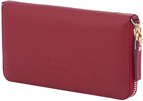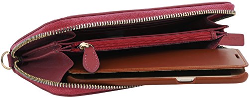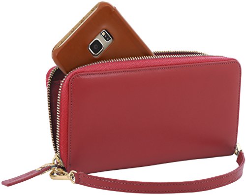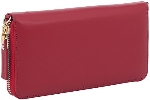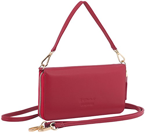 StilGut Smart Wallet in pelle - elegante clutch, portafoglio, custodia per smartphone e borsa a tracolla, Rosso Nappa
