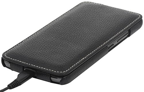 StilGut UltraSlim Case, Custodia Flip Case in Vera Pelle per Lenovo Moto G5, Nero