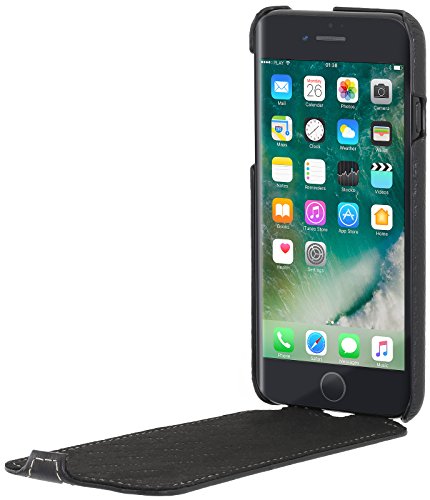 StilGut UltraSlim Case, custodia flip case custodia verticale in vera pelle pregiata per Apple iPhone 8, Nero