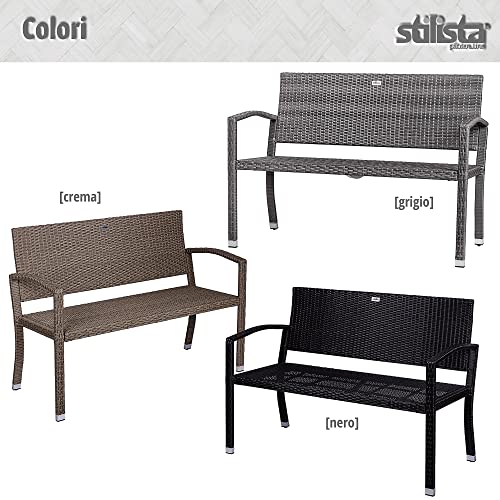 Stilista Panchina da Giardino - 2 Posti, da Esterno, in Polyrattan, Struttura in Acciaio, 122 x 52 x 89 cm, Colore a Scelta - Panca, Mobile da Balcone, Terrazzo