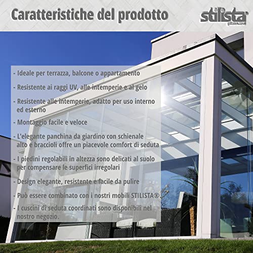 ADATTABILE: La nostra panchina è adatta a terrazze, giardini o balconi e si adatta a qualsiasi stile d'interni, siccome ha un aspetto moderno, elegante e sempre contemporaneo.