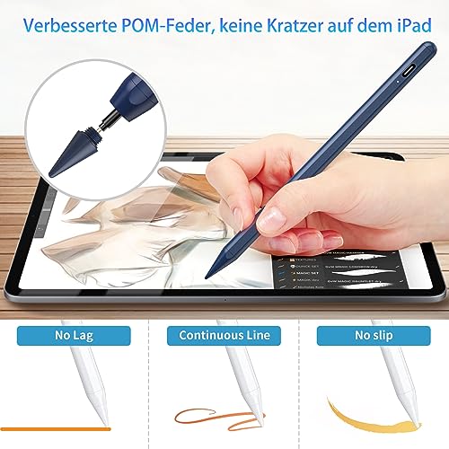 Stilo per iPad di 10° generazione, AT-Mizhi Magnetic Stylus iPad Pencil per modelli 2018-2022, penna di precisione per iPad 6./7./8./9./10, iPad Air 3/4/5, iPad Pro 11/12.9 con palm Rejection, blu