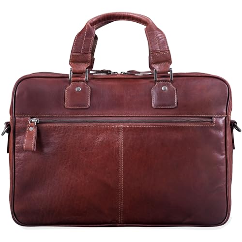 STILORD 'Aurora' Borsa lavoro donna in pelle Ventiquattrore a tracolla grande capiente Borsa porta PC 13,3 pollici in cuoio vintage, Colore:conciata al vegetale marrone scuro