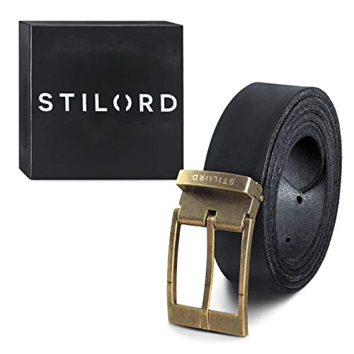 STILORD Cintura Universale in Vera Pelle Accorciabile Lunga 130 cm con Scatola, Colore:nero | Fibbia antica - bronzea I I, dimensione:Universal 80-130 cm