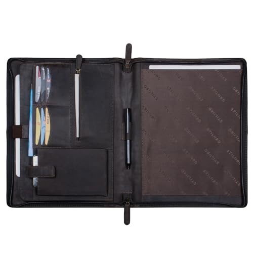 STILORD 'Harrison' Cartella Portadocumenti A4 in Pelle Portablocco da Ufficio Porta Computer Vintage con Zip, Colore:marrone scuro