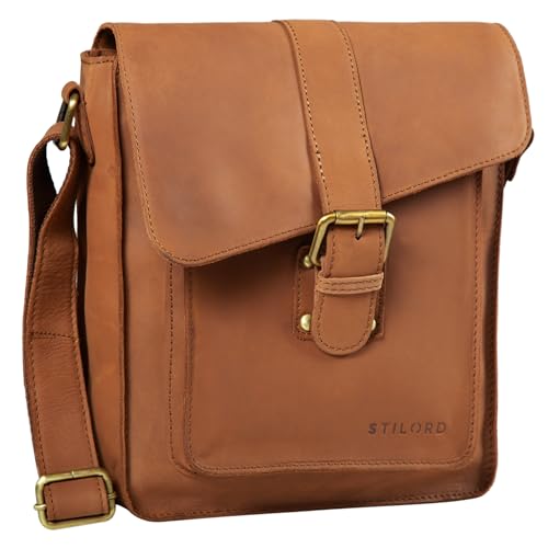 STILORD 'Lukas' Borsello a tracolla uomo in vera pelle Messenger media piccola per Tablet 10,1 pollici Borsa a spalla in cuoio, Colore:sella - marrone
