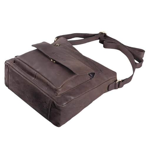 STILORD 'Mira' Borsa donna a tracolla pelle vintage Borsetta cuoio grande Messenger piccola per un Tablet da 12.2 pollici, Colore:marrone scuro - pallido