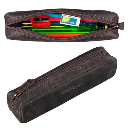 STILORD 'Preston' Portapenne Vera Pelle Astuccio Vintage Portamatite per Uomo Donna Porte Penne Astuccio Borsellino per Scuola Uffcio Portatrucco in Cuoio Autentico, Colore:marrone scuro