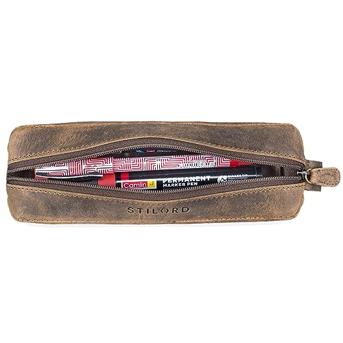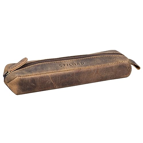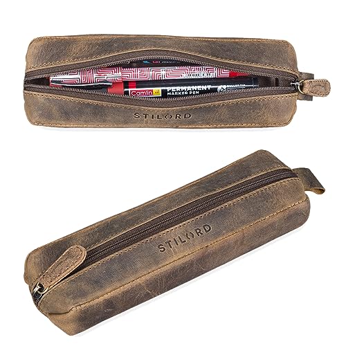 STILORD 'Quinn' Astuccio in pelle vintage | Porta penne, matite, pennelli, righelli, gomma etc. | in vera pelle di vitello