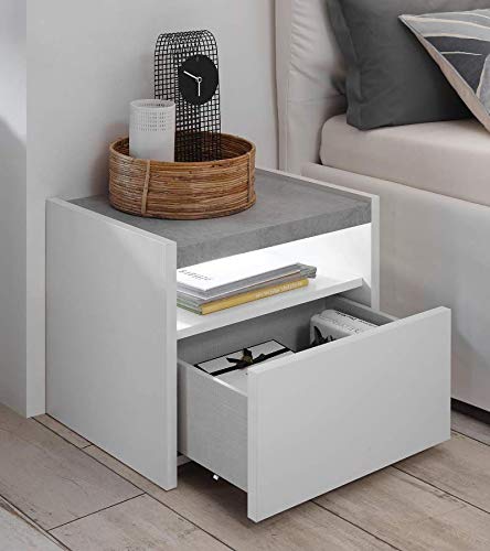 Stilprojectstore Coppia Comodino 1 Cassetto - Full - Bianco Opaco/Cemento