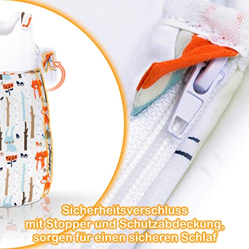 Stimo Sacco nanna estivo, 100% cotone, con inserti di ventilazione, sacco a pelo per bambini, senza maniche, 90 cm, animali della foresta