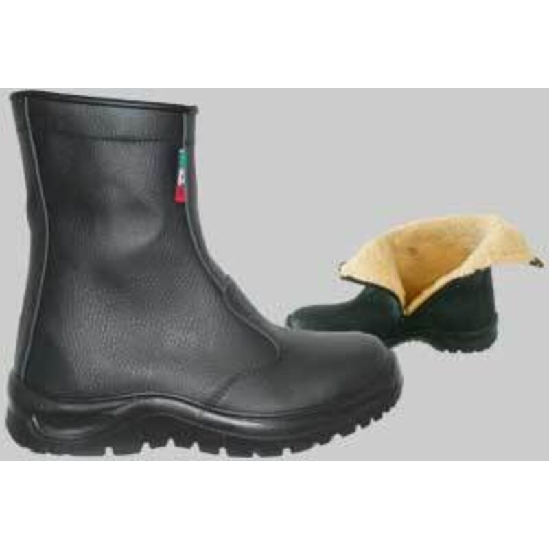 Stivale in pelle fiore con cerniera. Puntale in acciaio anticorrosivo resistente all'urto fino a 200J. Lamina antiperforazione in acciaio inox. Calzatura antistatica con capacit... di dissipazione delle cariche elettrostatiche. Fodera interna in ecopelliccia. Suola in poliuretano PU antistatico iniettato direttamente su tomaia, antiscivolo, resistente all'abrasione, agli idrocarburi e agli acidi deboli. Tallonetta di pulizia interna, anatomica rivestita in tessuto traspirante con fori di aerazione nella parte anteriore. Stivale antinfortunistica 'iceberg' s3 n° 42 LEWER Scarpe antinfortunistica lewer