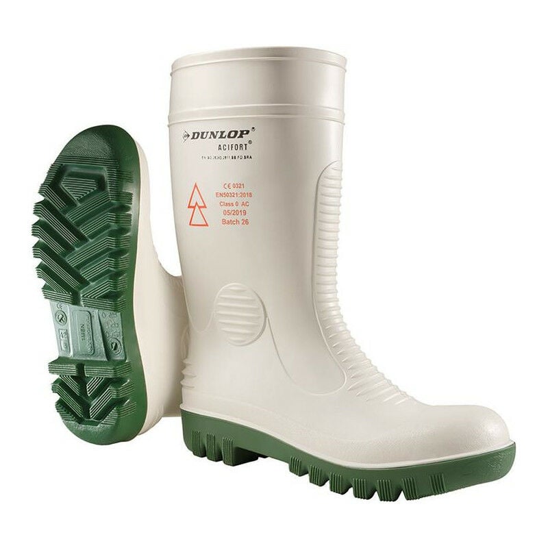 Scarpa Acifort High Voltage. SB SRA Approvazione/standard: EN ISO 20345. SB SRA. EN ISO 50321 Classe 0 Design: - 100 % impermeabile - Resistente agli oli - Tomaia molto durevole e resistente all'usura - Speciale miscela di materiali per la protezione dall'alta tensione Suola: Suola stabile Materiale: Acifort® Sicurezza: Puntale in acciaio Colore: bianco-verde.
