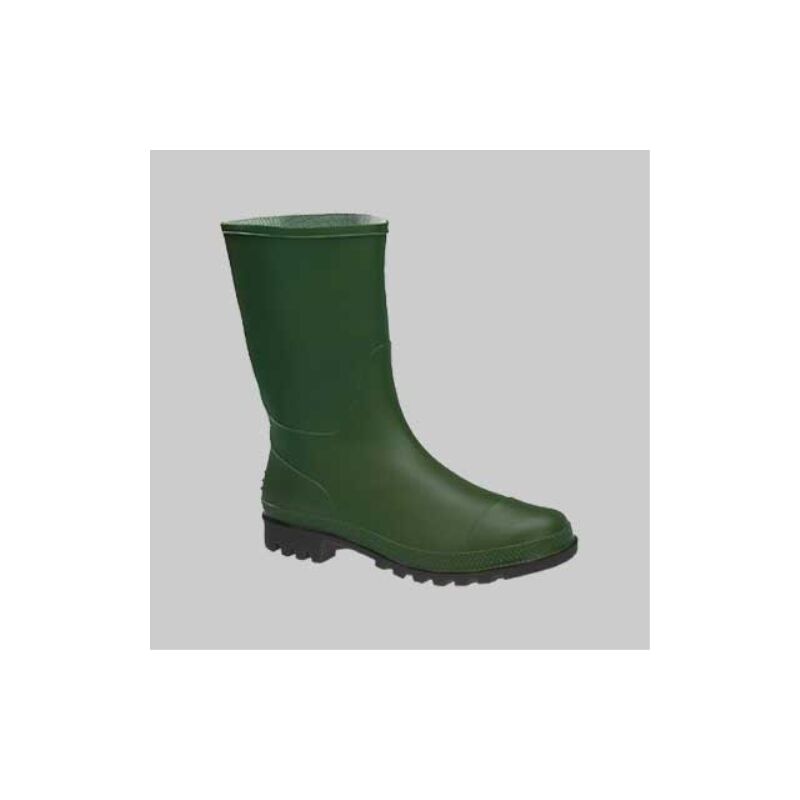 In PVC colore verde. Fodera interna in maglia di cotone. Suola carrarmato colore nero resistente agli oli e carburanti. Stivale in pvc mod. 'tronchetto' n° 43 Stivali in gomma e pvc