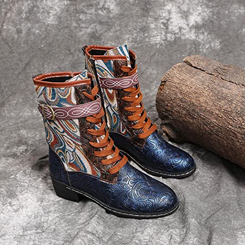 Stivaletti Bassi Stivali Plus Size Stivali di Colore Tubo Medio (43,Blu)