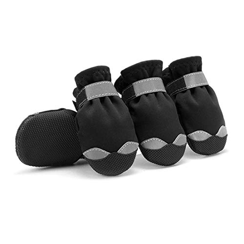 Stivaletti per cani, riflettenti, in gomma, per animali domestici, impermeabili, per esterni, 4 pezzi, per cani di taglia piccola e grande (4#, nero)