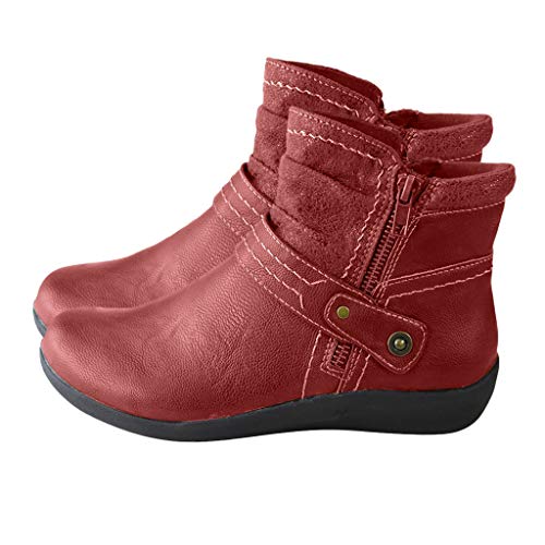 Stivaletti Donna Ballerine Punta Tonda in Pelle Scarpe Antiscivolo Cerniera Comoda Caviglia (37,Rosso)