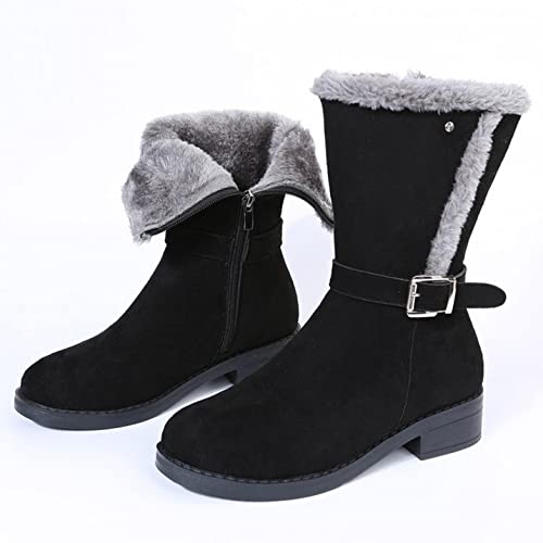 Stivaletti da Donna, Suola profilata, Tacco a Blocchetto Stivali Donna Moda Colori Puri Stivali con Cerniera a Punta Tonda Tacchi Quadrati Vintage (36,Nero)