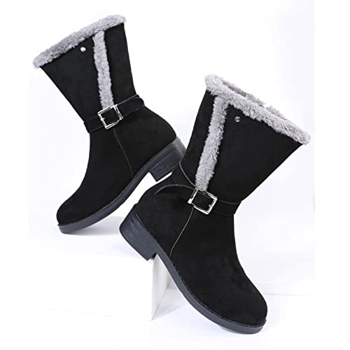 Stivaletti da Donna, Suola profilata, Tacco a Blocchetto Stivali Donna Moda Colori Puri Stivali con Cerniera a Punta Tonda Tacchi Quadrati Vintage (35,Nero)