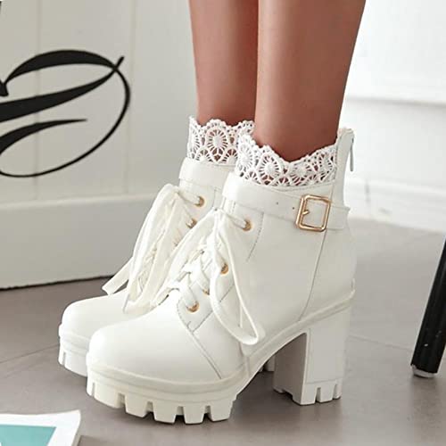 Stivaletti da Donna Stivaletti con Tacco Medio e Tacco Quadrato con Lacci (39,Bianca)