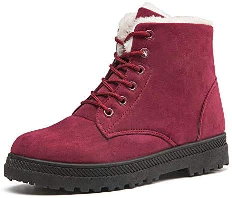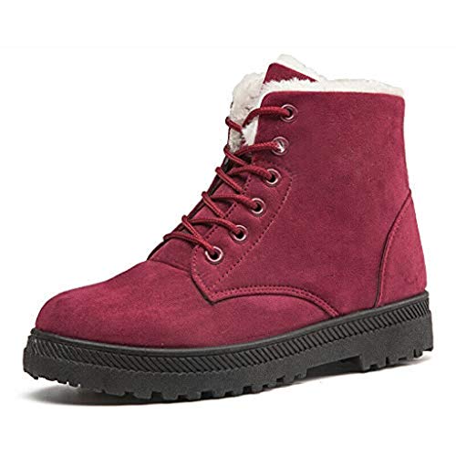 Stivaletti invernali da donna con lacci, foderati in pelliccia, casual, piatti, da neve, colore: rosso, 36