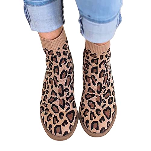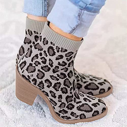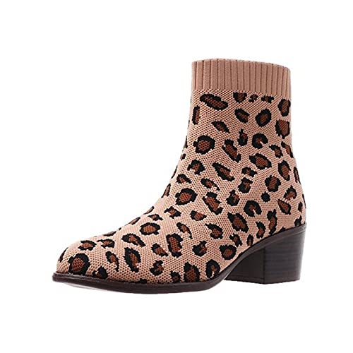 Stivaletti Lavorati A Maglia Elasticizzati Da Donna Stivaletti Corti Con Tacco Grosso Alla Moda Invernale Stivaletti Eleganti Pull-On Stivaletti Leopardati Retrò Scarpe Da Festa Da Donna,Marrone,36