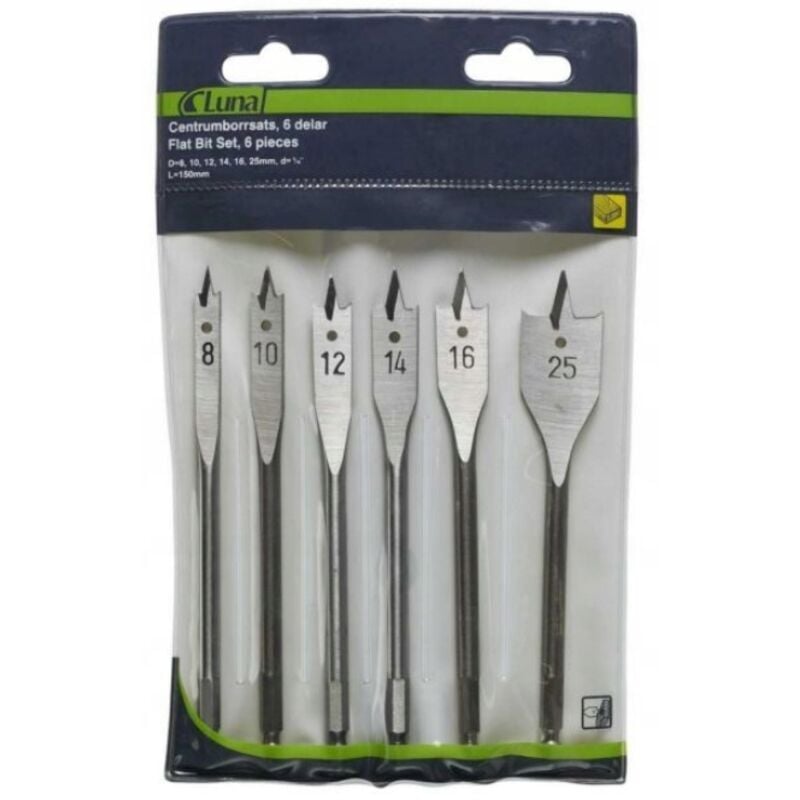 Dati tecnici: Marca: Luna Misura gambo: 1/4" Tipo gambo: Esagono Numero elementi (pz): 6,00 Contenuto misura punta: 8, 10, 12, 14, 16, 25 mm Dimensioni imballo (mm): 8x145x230 Quantità nella Confezione (pz.): 1 Codice EAN: 7311662130497 Set punte piatte con gambo esagonale da 1/4", piatte, con pre-tagliente. Consegnato in una custodia di plastica. SET LUNA PUNTE PIANE PER LEGNO ** Foto illustrative.