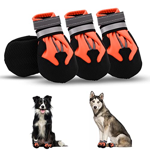 Stivali per cani,4 Pezzi scarpe per cani impermeabili con cinturini riflettenti Suola antiscivolo Protezioni per zampe da esterno Scarpe per cani di taglia piccola e media Autunno Inverno (Orange,L)
