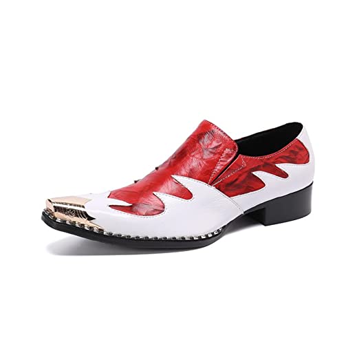 Stivali Da Cowboy Da Uomo Scarpe Eleganti A Punta Scarpe Da Sera Scarpe Basse in Pelle Traspirante Oxford,Rosso,45 EU