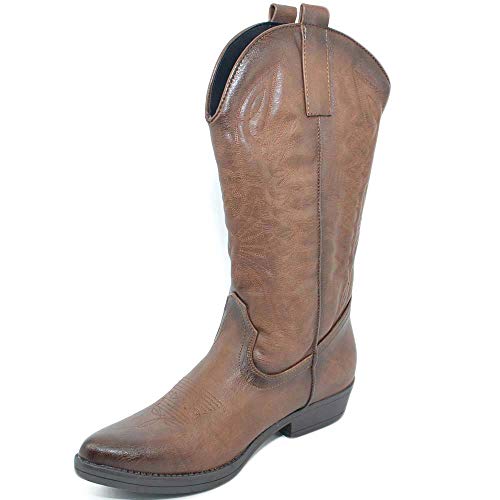 Stivali Donna camperos Texani Stile Western Marroni spazzolati con Fantasia Laser su Pelle Tinta Unita Altezza Polpaccio (38 EU)