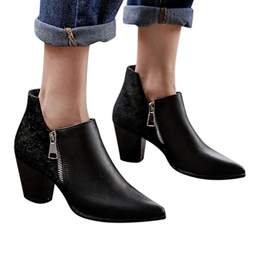 Stivali Donna Caviglia Autunno Tacco Quadrato Scarpe Piattaforma Casual Breve Moda Boot (39,Nero)