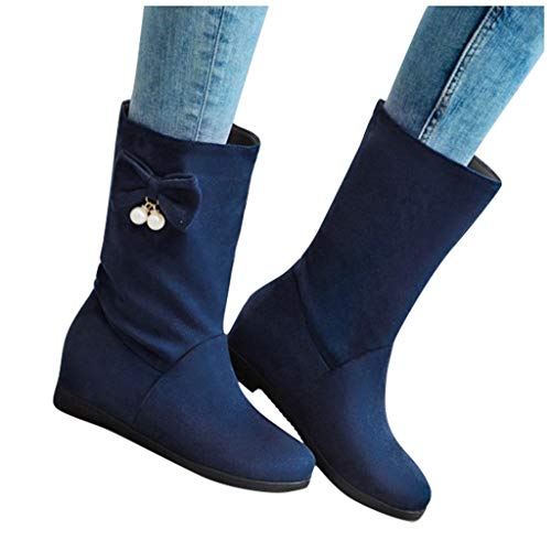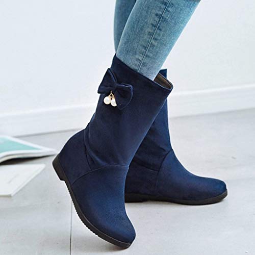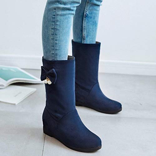 Stivali Donna Inverno Caldo Piatto con Stivali Alti Caldi Stivali Scarpe Studenti di Grandi Dimensioni (41,Blu)