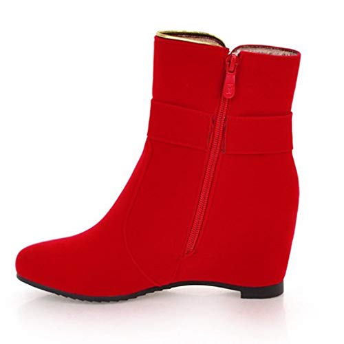 Stivali Donna Moda Aumentare Fiocco Stivali da Neve con Cerniera alla Caviglia con Zeppa Corta (40,Rosso)