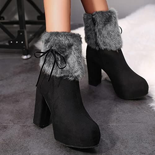 Stivali Donna Moda Piattaforma Impermeabile Testa Tonda Tacchi Alti Cerniera Caviglia (35,Nero)