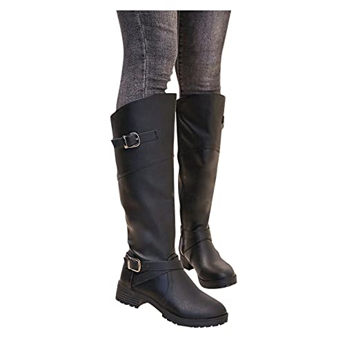 Stivali Donna Pelle Tacco Alto Tacco Medio Retro Fibbia Stivali Rider Stivali Lunghi Scarpe (38,Nero)