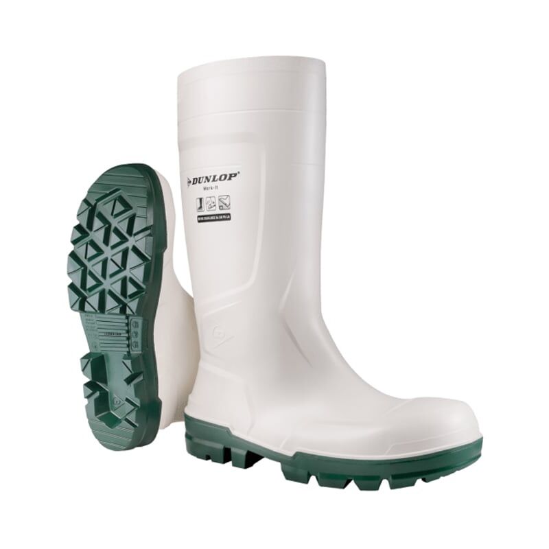 Gli Stivali bianchi da lavoro in PVC Dunlop NB1JB01 S4 SR fanno parte della collezione Work-it Safety che immette nel mercato nuovi prodotti sottoposti a test produttivi sofisticati che li rendono più sicuri e confortevoli;