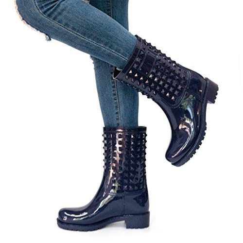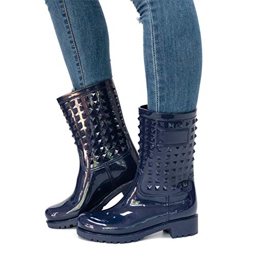 Stivali Pioggia Donna Stivali Gomma Impermeabili Stivaletti Hunter Alti Wellington Boots Lavoro Antiscivolo Scarpe Giardino Piatto Invernali Nero Blu 36-43 Blu 39