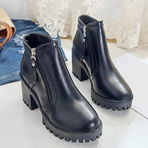 Stivali Scarpe Donna Pelle Basso Piatto Tacco Piatto Chelsea alla Caviglia (37,Nero)
