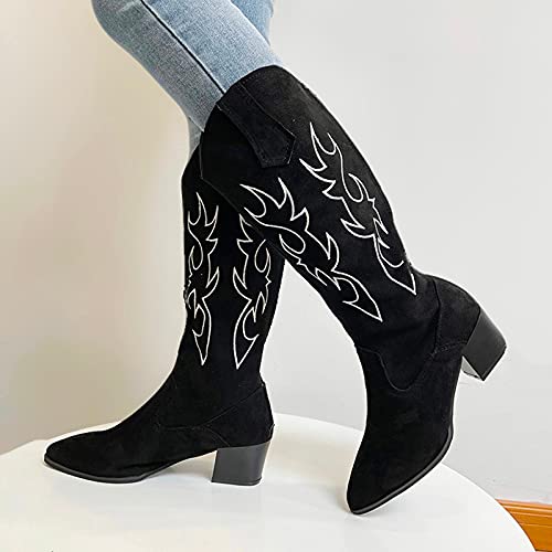 Stivali Stivaletto con Tacco Stivali Antinfortunistici Stivali Donna Moda Casual Tacchi Quadrati Scarpe Lunghe alla Caviglia (39,Nero)