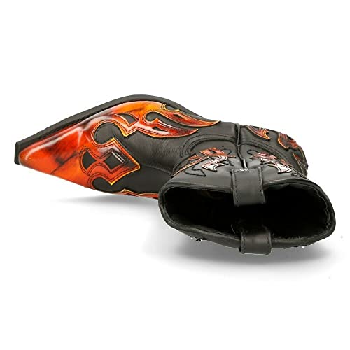 Stivali da Uomo New Rock 7921 S2 Stivali da Cowboy con Fiamma Rossa e Nera con Cerniera 40