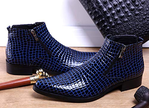 Stivali Uomo Vintage Stampa Coccodrillo Zip Stivaletti Elegante Punta Appuntita Pelle Stivali Nero Blu 40 EU